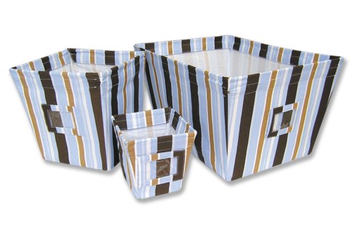 Blue Max StripeFabric Storage Boxes Set of 3 fabric storage bins, 1 small, 1 medium, 1 large Features fun and modern prints Made with the Best Quality Material with your child in mindTop Quality Children's Item Makes a great GiftVisit our store for matching accessories Read more...