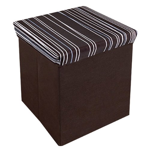 - Storage Stool Ottoman with Striped Cushion Top in Dark Brown