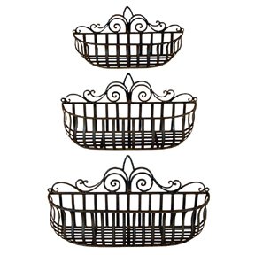 Organize & beautify your home with our Mediterranean Garden wrought iron wall baskets. Stylish baskets are hand crafted of wrought iron with a dark Tuscan brown finish. They feature an Old World leaf & scrolled iron design. Can be hung on the wall or used on the counter top for keeping herbs, spices, fruits, vegetables, towels, decanters, plants, and other necessities close at hand and well organized. Read more...