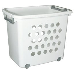 Size - 15-1/2" x 22-1/2" x 18" h. For storing toys, laundry, pool accessories or sporting equipment, our Large Wheeled Stacking Basket handles oversized storage jobs with ease. Heavy-duty handles and wheels make it easy to maneuver. If you want to stack one basket on top of another, simply flip down the handles.||Made from polypropylene Read more...