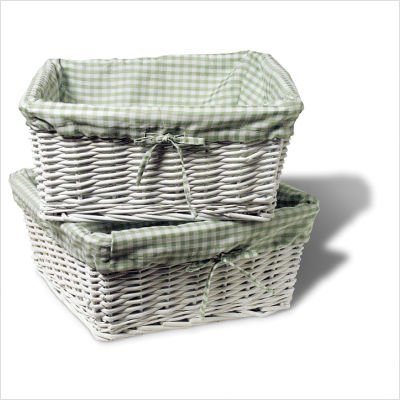 3132 Sage Features: -Large willow basket set. -Baskets color: white. -2 piece willow basket. -Sage gingham liners. -Great for storage. -Liner is machine washable. Read more...