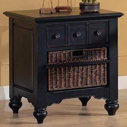 This charming casual end table will give your living room a warm look. The table top features a rustic planked look with a smooth molded edge. A drawer helps you hid clutter while a pull out storage basket below offers additional storage with a little country charm. An elegant shaped apron and turned spade feet at the base complete this beautiful style. In a warm black rubbed finish this end table will add a soft touch to your living room.The San Jose Casual End Table with Storage Basket by Coaster is available in the area from Coaster. Read more...