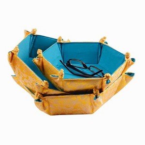 Unique, hexagon shaped table baskets are made from sturdy stain-resistant fabrics. Padded sides are connected at each corner with a knot design and loop. An ideal basket to hold fruit, bread, dried flowers or candy. Great to decorate any table in your home or office Read more...