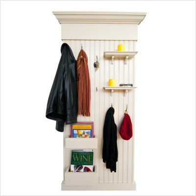 MW2010O-BW-1 Extremely functional and loaded with character, our unique Muddwalls offer an innovative and fun approach to storage. Designed to hang directly on the wall, each Muddwall provides a variety of storage solutions all while looking like a fresh and exciting piece of artwork in your home. These things are guaranteed to get people talking! With it's breezy, cottage-style design, the Ocean offers a variety of storage options and will add an easygoing summer feel to any home. -Features:. -Two Storage Shelves. -Two Storage Boxes. -Four Coat Hooks. -Two Key Hooks. Read more...